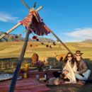 Horseback riding with animal feeding